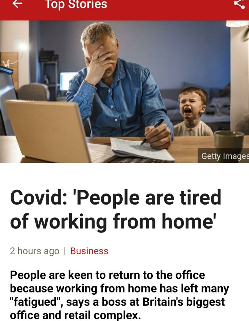 Totally unbiased BBC one-sided view of whether people are tired of working from home, featuring a man who has a vested interest in commuter meat-robots returning to London.