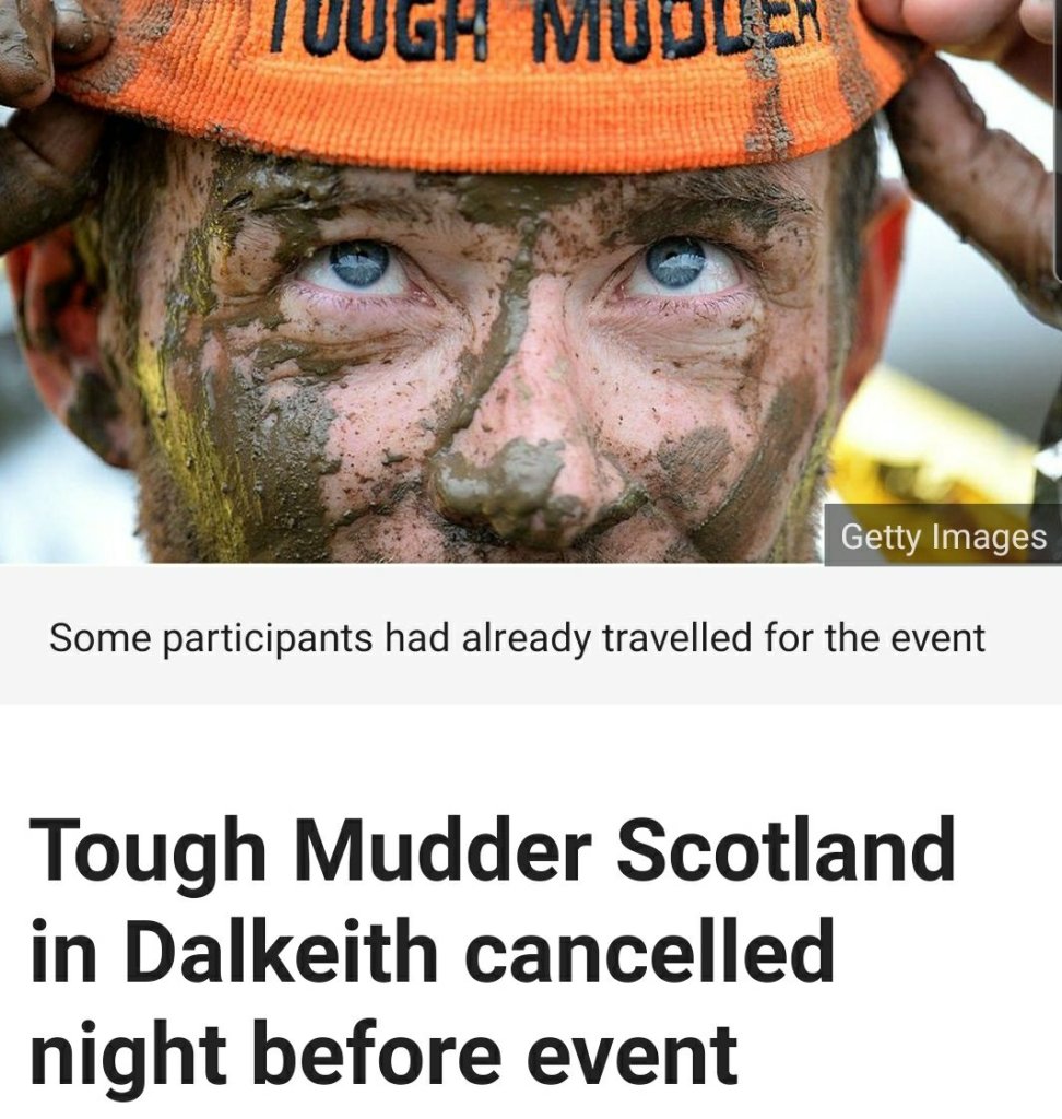 Workers around the UK are relieved that the latest Tough Mudder event has been called off due to entirely predictable pandemic-related hilarity.