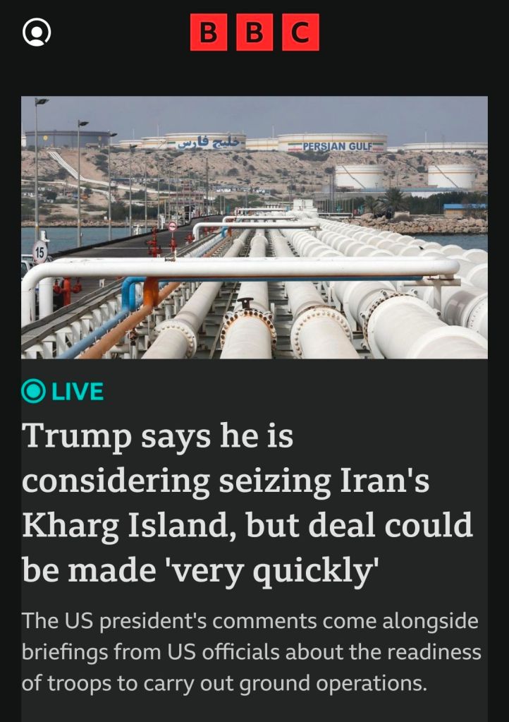 Trump says he is considering seizing Iran’s Kharg Island, but deal could be made ‘very quickly’ – BBC News