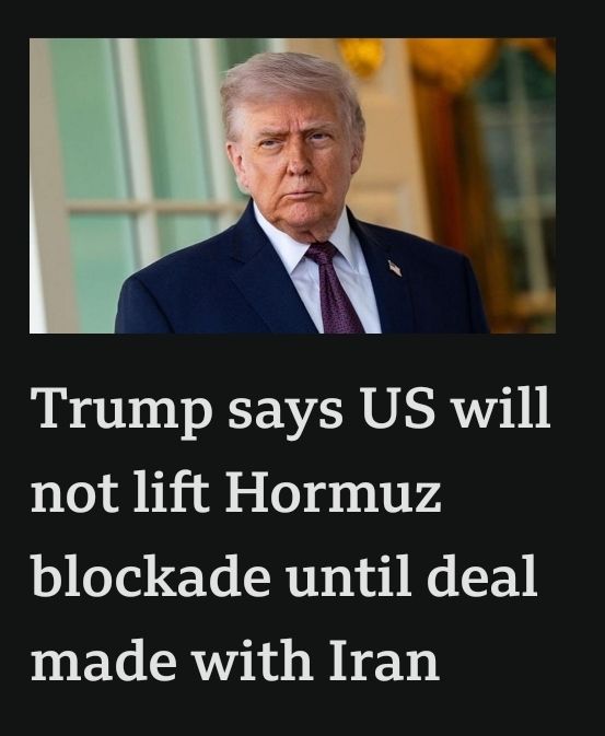 BBC News – Donald Trump: US will not lift Hormuz blockade until deal made with Iran – BBC News