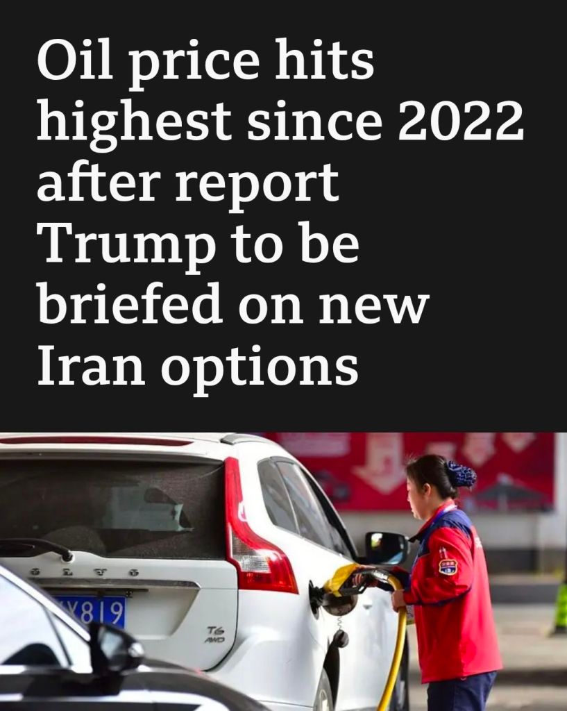 Oil prices jump based on assumed likely random action by piss-stinking orange spunk-trumpet. A flock of bastards.